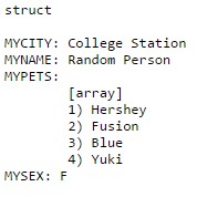<cfset myVariable.MyPets[1] = "Hershey" />