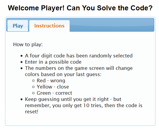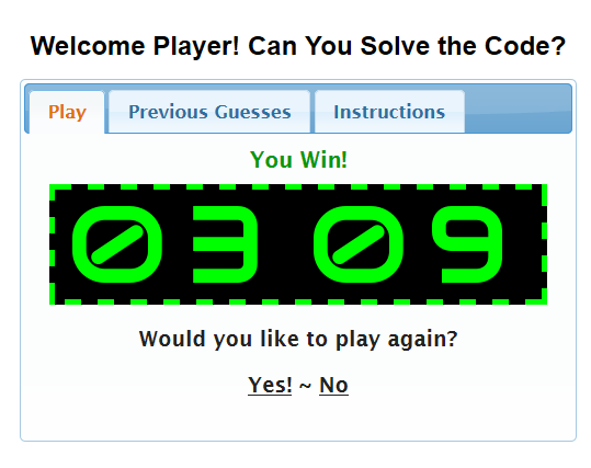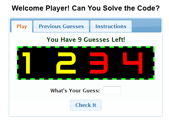 <h1>Welcome Player! Can You Solve the Code?</h1>